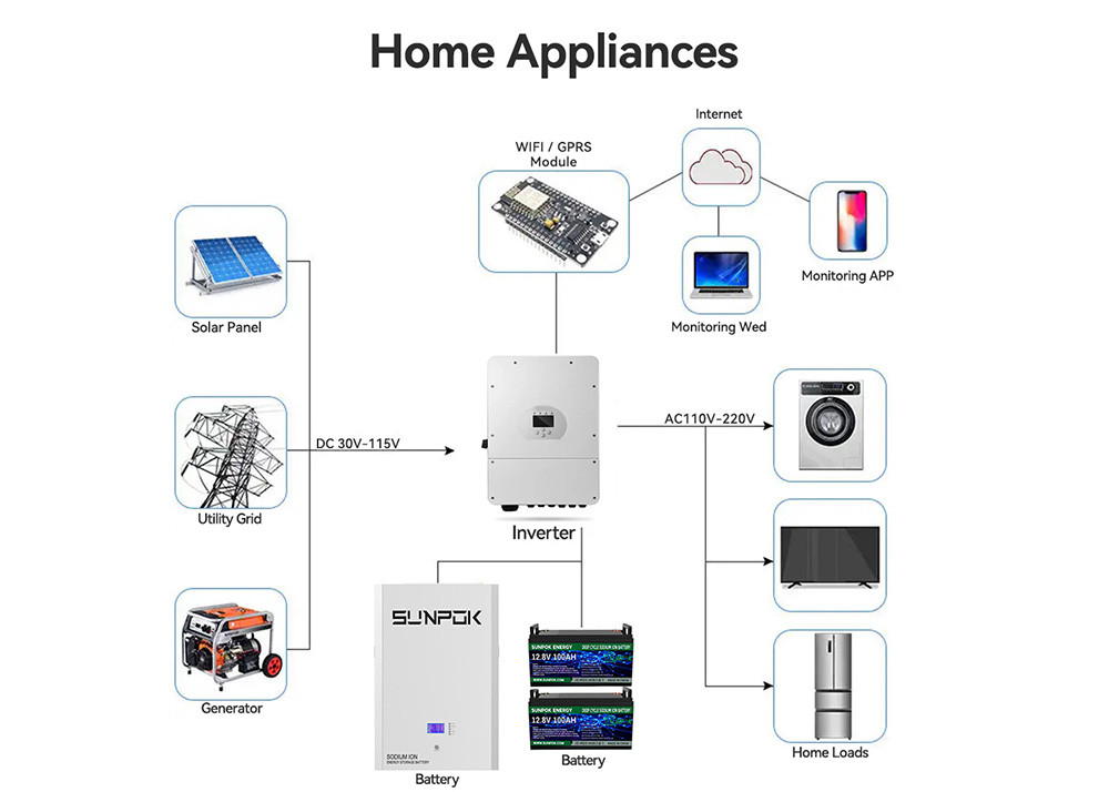 Mengontrol penggunaan energi Anda tidak pernah lebih sederhana. Antarmuka yang ramah pengguna pada baterai natrium-ion SUNPOK memudahkan Anda untuk melacak dan mengontrol penggunaan energi Anda.Dengan semua informasi yang Anda butuhkan di ujung jari Anda, Anda dapat memutuskan kapan dan bagaimana menggunakan energi yang tersimpan.