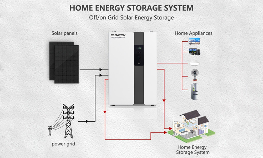 All-in-One ESS - SUNPOK Home Battery menawarkan solusi penyimpanan energi lengkap untuk rumah Anda. Baterai powerwall kami tersedia dalam berbagai kapasitas - 5Kwh, 7Kwh, 10Kwh, 15Kwh, dan 20Kwh.